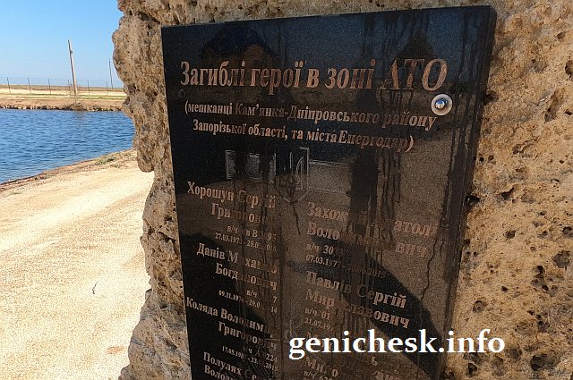 За с.Стрелковое в мемориале посвященном защитникам Украины неизвестные облили кислотой (?) памятный знак посвященный погибшим героям АТО из жителей Каменско-Днепровского района Запорожской области и жителей Энергодара.