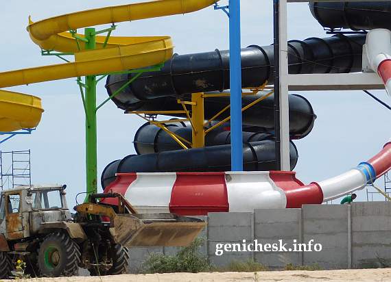 На Арабатской стрелке в Генгорке анонсировано на 23 июня, считай через неделю, открытие аквапарка Оазис, первого аквапарка в Генгорке и первого же на Азовском море в Геническом районе. Естественно было интересно самостоятельно посмотреть готовность аквапарка принимать отдыхающих. И небольшой личный фотоотчет вызвал массу вопросов по безопасности работы этого аквапарка. Нет, за неделю можно успеть поварить поручни, дело нескольких дней, можно побыстрому положить плиточку. Но можно ли побыстрому проверить аквапарк на безопасность для посетителей ? Это когда буквально вчера мы приварили поручни а буквально завтра с водяных горок и по трубам полетят дети. Кто поручится что все будет хорошо ? И не будут ли посетители аквапарка первыми испытателями за свои же деньги ?