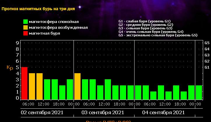 2 сентября утром по прогнозу Земли достигнет самая мощная за последний год солнечная магнитная буря в 5 баллов из 9-ти возможных.