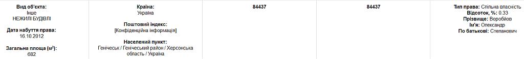 Надо брать пример с Воробьева, головы Генической райгосадминистрации. Там почти все на жену оформлено. Квартиры в Днепре, офис в Новомосковске, хатынка в Стрелковом, гараж в Днепре и что-то охренительно большое но совершенно нежилое в Геническе и всего 0.33 процента от общей площади в 682 квадрата .