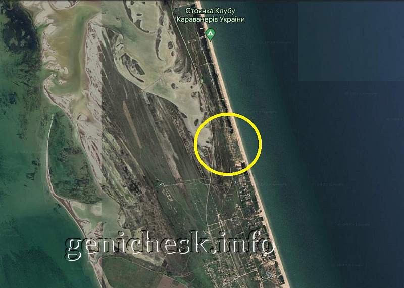 Это местность между стоянкой караванеров и северной частью с.Стрелковое. Таким образом опасность от неразорвавшихся мин представляют пляжи в с.Стрелковое а через некоторое время и в с.Счастливцево.