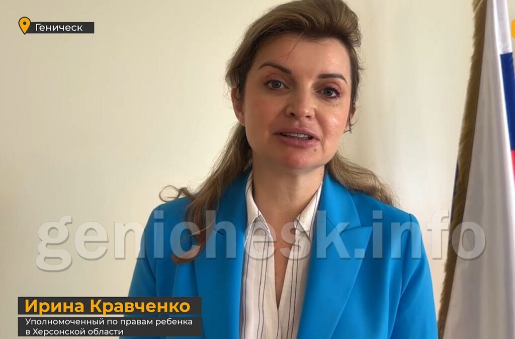 Ирина Викторовна Кравченко фигурирует в официальных российских источниках как уполномоченный по правам ребёнка в Херсонской области. Речь идёт о левобережной части региона, включая Геническ, которая находится под контролем рф.