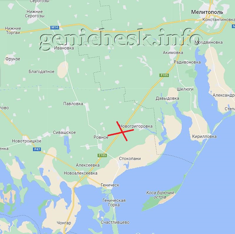Окраины с.Новый Мир в Геническом районе Херсонской области — спутниковое фото от 2 ноября 2022 г.