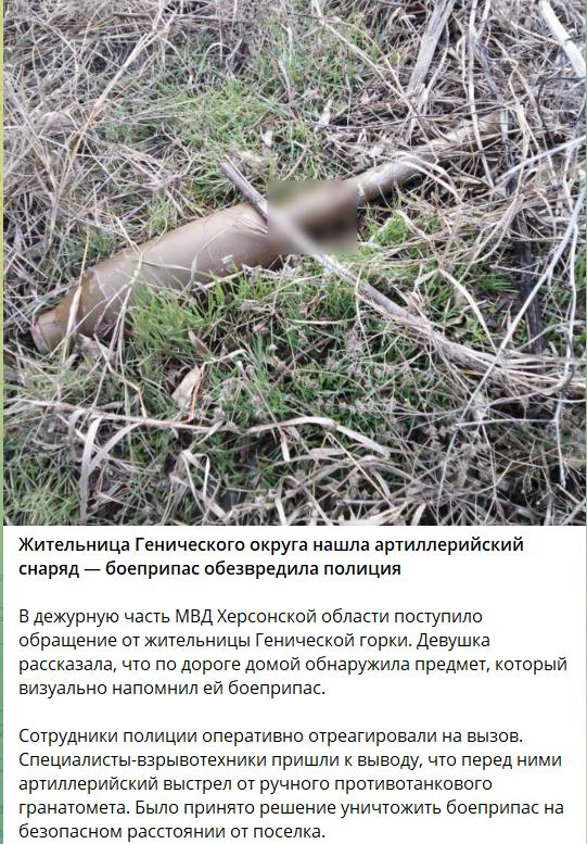 На этот раз в Генгорке (с.Геническая Горка) нашли выстрел от гранатомета.