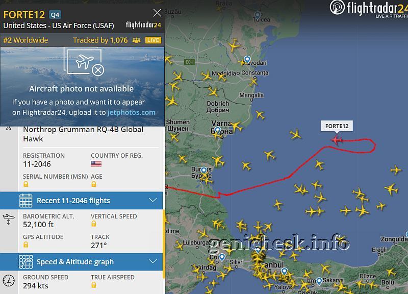 Стратегический разведывательный дрон ВВС США над Черным морем