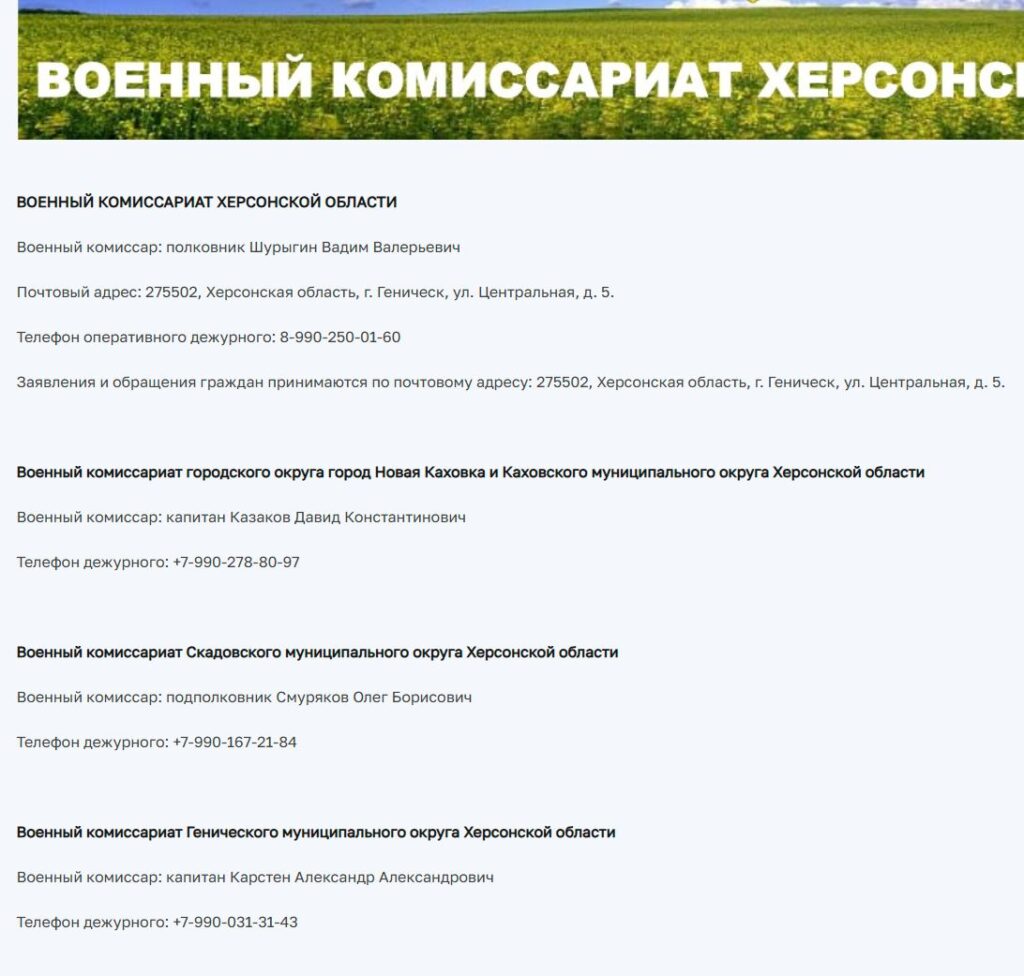 Одним із головних інструментів цього злочинного механізму стали створені РФ незаконні «військові комісаріати», які функціонують під виглядом місцевих структур, проте повністю керуються військовим командуванням Росії.