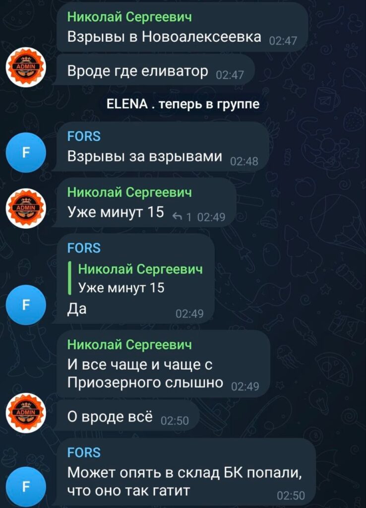 Новоалексеевка. Взрывы в районе элеватора