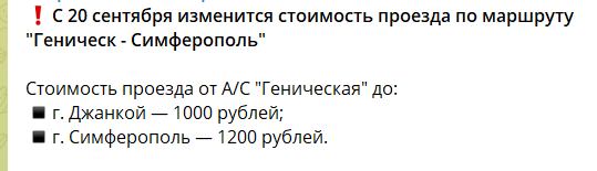 С 20 сентября изменится стоимость проезда по маршруту «Геническ — Симферополь»