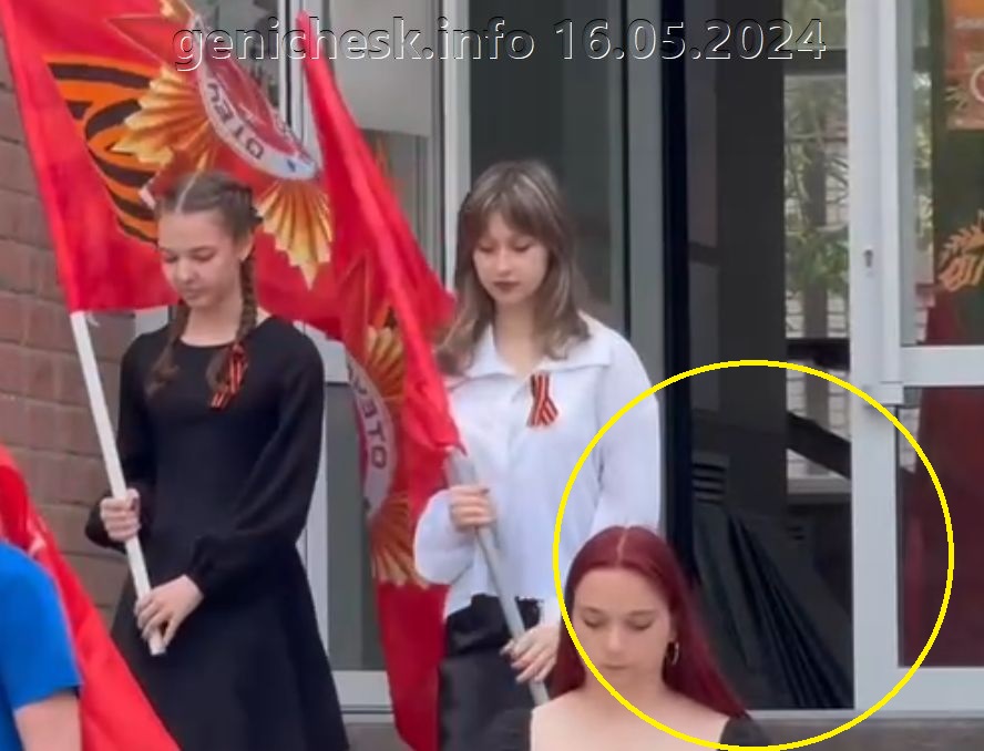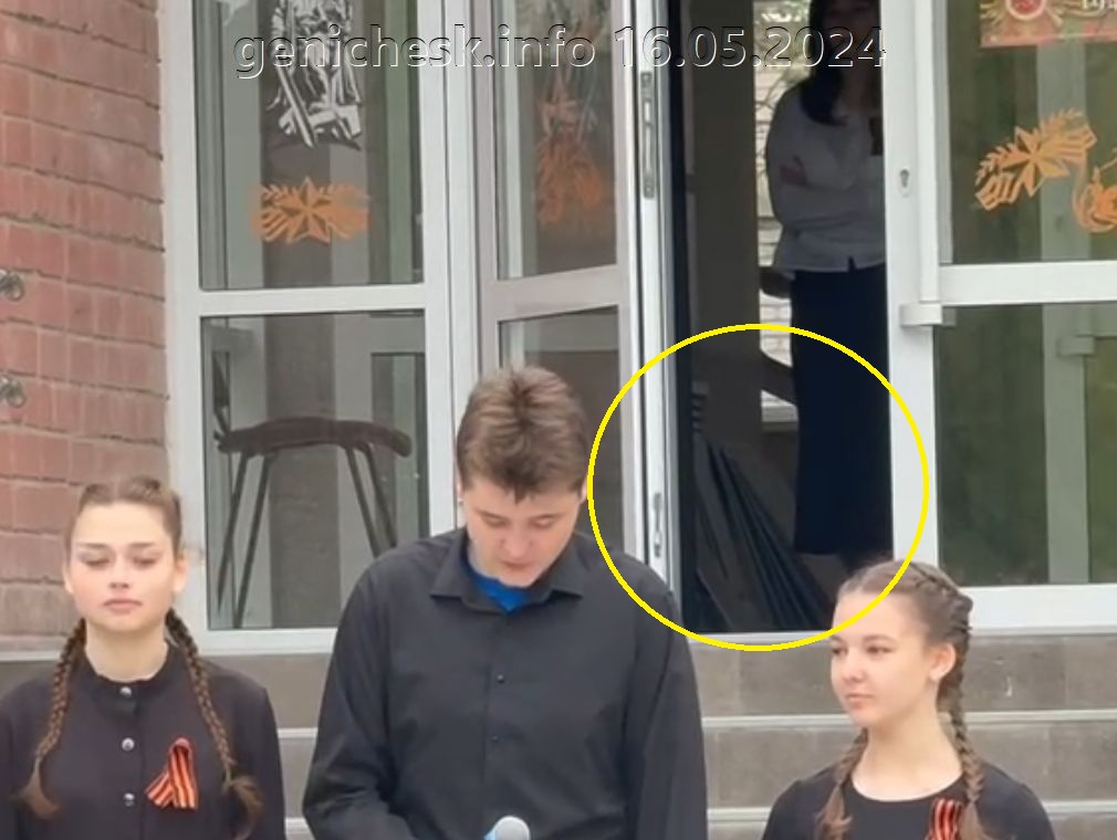Доказательством тому могут послужить скрины с видео сделанные во дворе третьей школы в Геническе 9 мая 2024