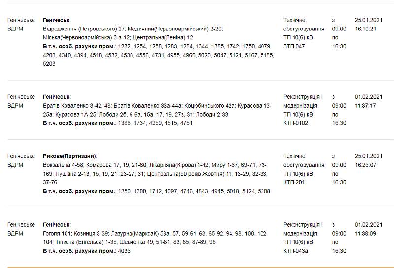 На понедельник в Геническе местные энергетики запланировали большие отключения линий электропередач, на профилактику.