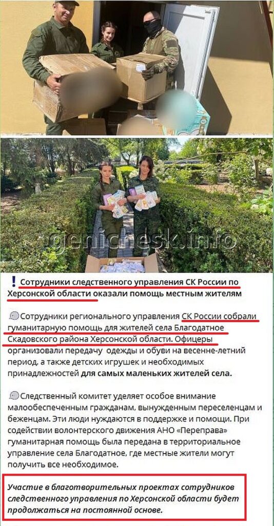 Местные СМИ сообщают что офицеры Следственного комитета России продолжают осваивать новые гражданские профессии на оккупированной части Херсонской (Генической) области.