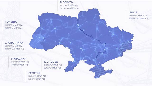 Украина 1 февраля возобновила импорт электроэнергии из России, с 12:00 до 15:00 и с 20:00 до 21:00 планируется поставлять по 200 МВт-ч каждый час. С 21:00 по 23:00 — по 100 МВт-ч каждый час.