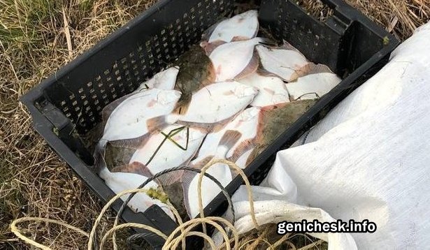 В феврале 2021 в Азовском море, район с. Счастливцево Генического района, был задержан мужчина, который осуществлял незаконный лов рыбы запрещенными орудиями — тремя сетками:
