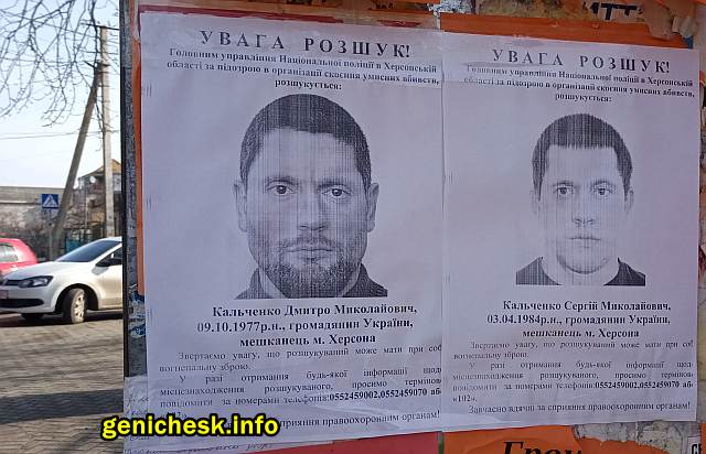 Главное управление национальной полиции Херсонской области по подозрению в совершении спланированных убийств разыскивает двух жителей Херсона